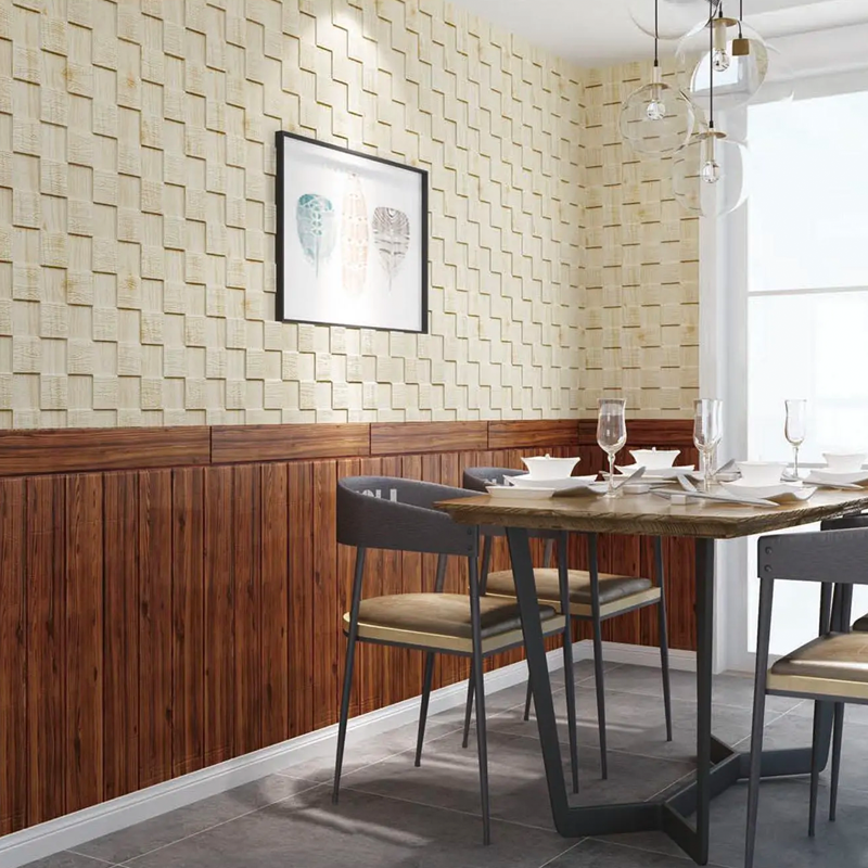 Diseño de Cuadros y Textura de Madera: El diseño de cuadros y la textura de madera en relieve crean una apariencia auténtica y rústica en tus paredes, proporcionando un ambiente sereno y acogedor a tus espacios.