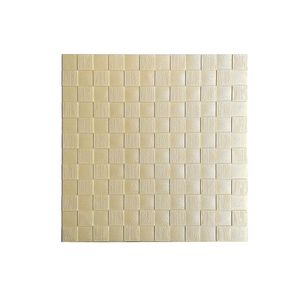 Agrega un Toque de Elegancia y Calidez a tus Paredes con Nuestras Láminas Autoadhesivas 3D en Beige con Diseño de Cuadros y Textura de Madera.