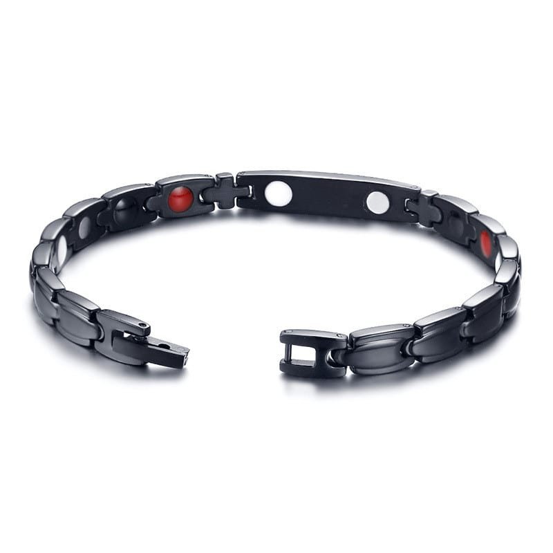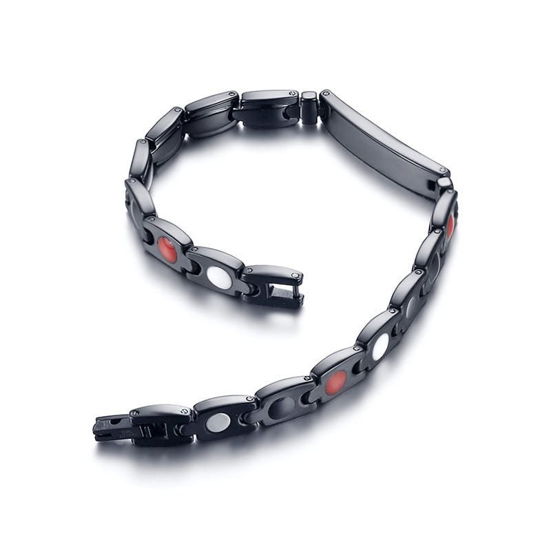 Combina Estilo y Bienestar con Nuestra Pulsera de Magnetoterapia Alemana de Acero Inoxidable Negro.