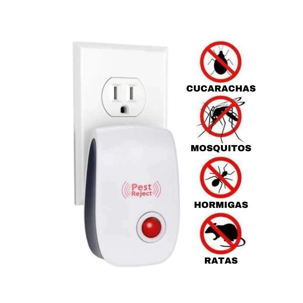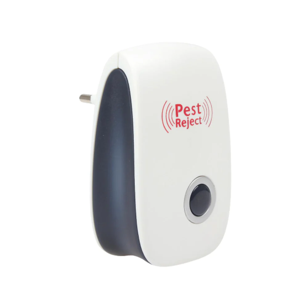El repelente de plagas Pest Reject utiliza ondas ultrasónicas para repeler plagas e insectos en el hogar, sin el uso de productos químicos. Se enchufa en una toma de corriente y crea un ambiente incómodo para las plagas. Seguro para niños y mascotas.